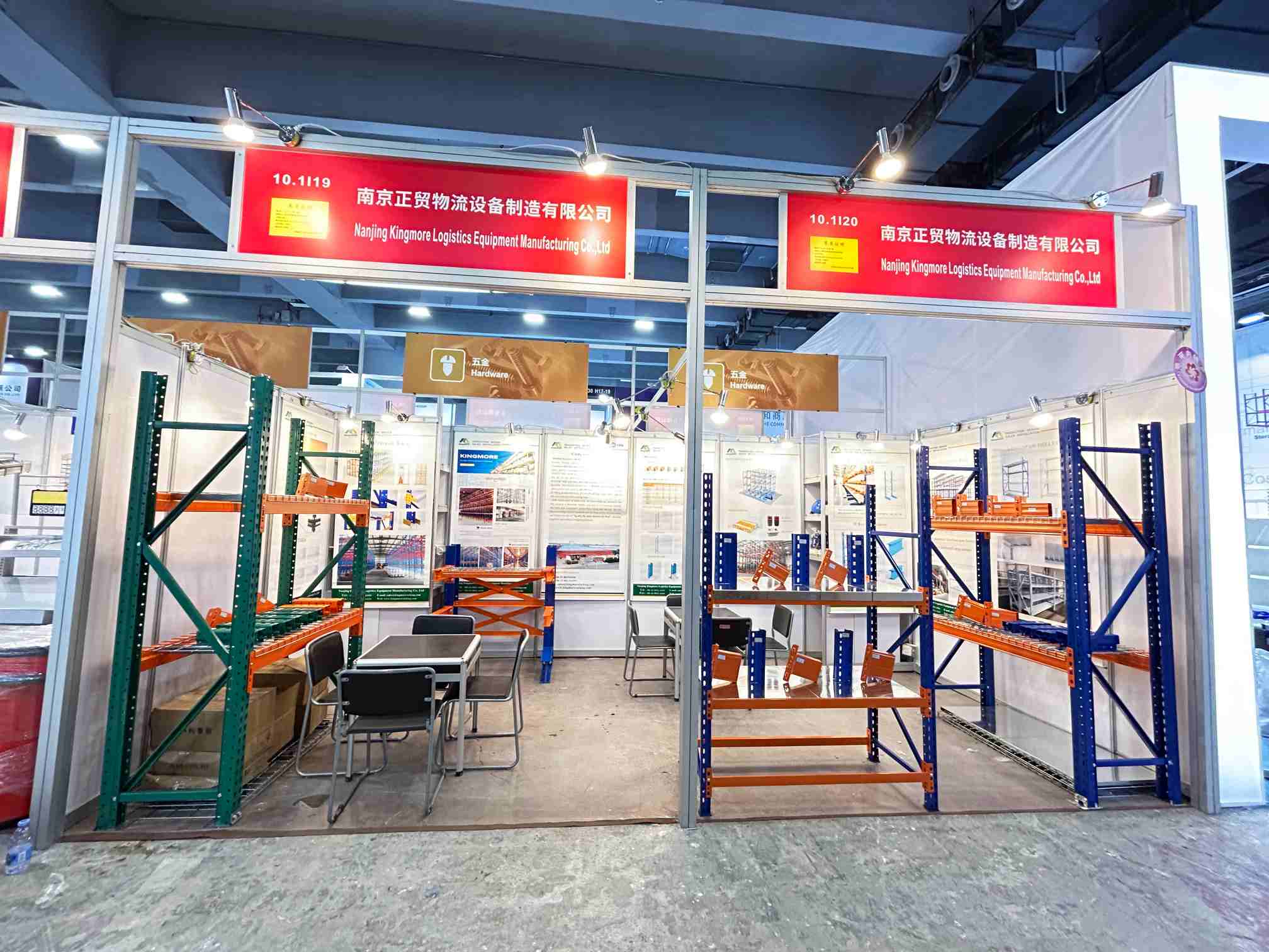 Comprehensive Product Range: KINGMORE RACKING displayed its core storage systems, such as selective pallet racking, drive-in racking, and cantilever racks, emphasizing their safety, durability, and space-saving designs.